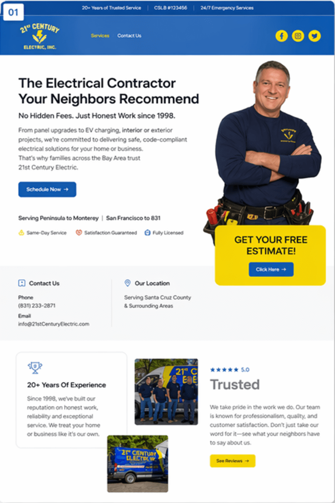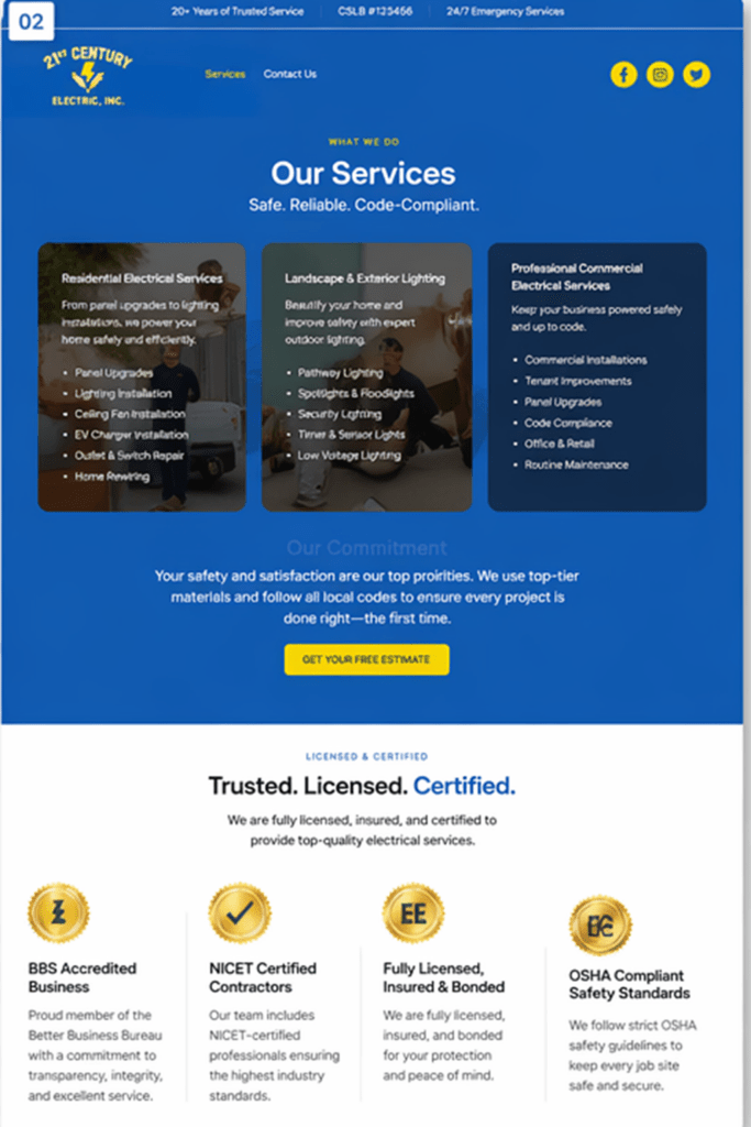 YayBlitz transformed 21st Century Electric’s outdated website into a modern, SEO-driven